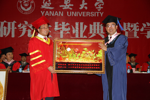 学位授予仪式结束后,全体毕业生起立,在化工学院化学专业毕业生金君和中共党史专业毕业生陈浩铭的带领下庄严宣誓。他们表示,将铭记母校校训,谨遵师长教诲,弘扬延安精神,报效祖国人民,实事求是,勇于创新,追求真理,传承文明,努力成为国民表率、社会栋梁,为民族振兴和人类进步而努力奋斗。