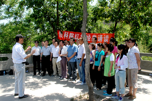 在凤凰山旧址,讲解员带领大家重温了革命历史。随后,全体同志步行登上凤凰山顶,在那里举办了红色经典诵读活动。全院教工分别以个人、教研室、办公室、自由组合等形式,先后诵读了《长征》、《沁园春·雪》、《可爱的中国》、《祖国万岁》、《我要回延安》、《相信未来》等诗词。最后,全体人员在合唱《东方红》中结束了诵读活动。