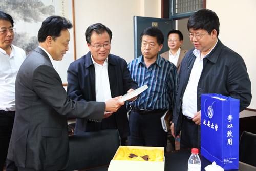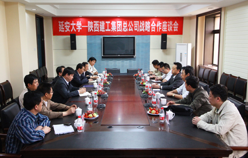 座谈会上,崔智林校长向薛永武总经理一行介绍了我校的历史沿革和发展情况。薛永武总经理简要介绍了陕西建工集团总公司的概况和近年来企业的发展情况,并谈到自己对延安和延安大学很有感情,希望双方进一步加强沟通交流,拓展合作领域,携手共进。张威虎副校长介绍了我校的基础建设和发展规划情况。施尧夫副总经理从合作模式和施工层面等方面进行了说明。双方还回顾了既往的合作情况。