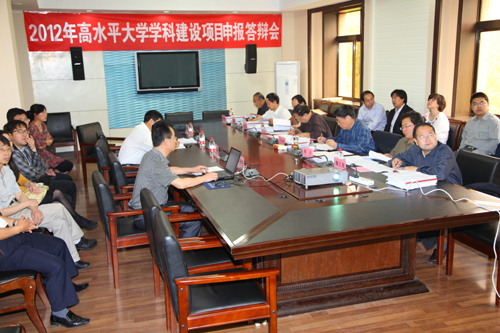 本网讯5月10日,我校2012年高水平大学学科建设项目申报答辩会在逸夫楼第三会议室举行。答辩会由专家组组长、陕西师范大学原副校长吕九如主持。专家组成员包括陕西师范大学发展规划与“211工程”建设处处长李继凯、西北大学“211工程”与学科建设处原主任于在平、西北大学社会科学处处长刘丰,我校计算机学院教授郭金保(副组长)、化工学院教授李丕高、文学院教授魏久尧。