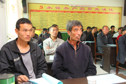 科技服务队一行首先来到砖窑湾镇贾居村山地农业设施示范园蔬菜大棚进行了实地考察,了解了蔬菜瓜果种植户所面临的技术问题和循环农业的建设情况。随后,服务队来到砖窑湾镇政府,以及附近贾居和苗店等3个村子,与近百位种植户进行了面对面交流,并向他们发放了《蔬菜病虫害综合防治技术》资料100余份。徐世才副教授从蔬菜常见病害、虫害的发病机理和规律入手,向农民朋友们介绍了利用生物防治结合化学防治等蔬菜病虫害综合防治技术,强调了蔬菜瓜果种植要树立品牌意识、绿色无公害方可提高经济效益的经营理念。徐副教授的讲解深入浅出、通俗易懂,受到了当地农民朋友的欢迎。