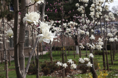 本网讯 初春时节,乍暖还寒,校园里的大部分花草树木尚在沉寂中等待复苏,而在我校代贤楼与克阿楼之间的“玉兰苑”,却已万花齐放,争奇斗艳,一片芬芳,引来广大师生驻足欣赏,拍照留念。