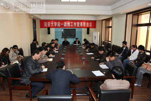会上,田伏虎部长简要回顾了我校2011年的统一战线工作,并从加强实时理论学习与宣传、不断健全和完善统一战线工作制度、加强民主党派的组织建设、加强党外人士队伍建设、在党外人士中继续开展建言献策做贡献主题活动、积极做好民族宗教工作和海外统战工作、加强统一战线工作自身建设等七方面,对2012年的统战工作进行了安排部署。统战部秘书王彦杰宣读了《关于表彰统一战线庆祝建党90周年系列活动优秀组织单位、优秀个人及优秀统战研究论文的决定》。根据决定,医学院、体育学院、历史文化学院和民进延大总支荣获庆祝建党90周年知识竞赛及统战调研论文优秀组织单位,《后改革时代多党合作与和谐发展》等7篇文章荣获庆祝建党90周年征文活动及统战调研活动优秀论文,白少民等18人荣获统一战线庆祝建党90周年统战理论知识竞赛优秀个人。随后,刘建德书记为获奖的集体和个人颁发了奖牌和证书。