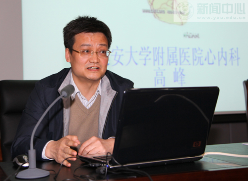 本网讯 应我校科技处邀请,3月28日下午,附属医院心脑血管疾病专家高峰和李健,在图书馆报告厅先后为我校师生作了两场题为《心脑血管病的防治》和《脑卒中的预兆与预防》的科普报告。我校离退休职工和计算机学院的200余名学生参加了报告会。报告会由科技处处长樊延虎主持。