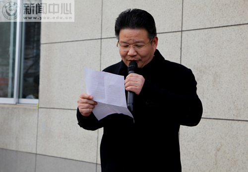 最后,仪式在学雷锋服务队代表、2011级石油工程专业学生李军伟宣读的倡议书中落下了帷幕。