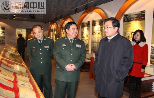 在我校党委副书记、校长崔智林和校办主任姚正宽等的陪同下,昨夜下榻于我校窑苑酒店的戴旭光政委一行,首先参观了我校校园和窑洞广场,随后参观了校史陈列馆。