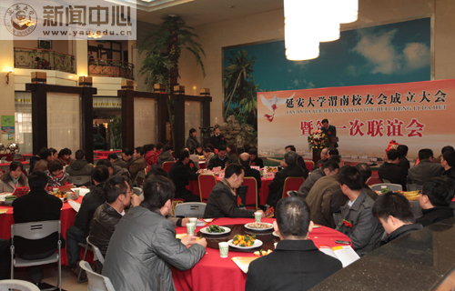 渭南校友会成立大会在嘹亮的延安大学校歌中拉开了序幕。会上,姚正宽秘书长宣读了延安大学校友总会《关于渭南校友会成立及组成人员名单的批复》。渭南校友会名誉会长、渭南师范学院党委副书记赵伏友,渭南校友会会长、渭南市科学技术局党组书记、局长张向民先后向大会通报了渭南校友会的筹备情况及今后的工作思路。铜川校友会会长、国药控股公司总经理李耀均向渭南校友会的成立表示了热烈祝贺。随后,渭南校友代表王志鹏、李荣堂、李安宁等纷纷发言,大家满怀感恩之心,共庆重逢的喜悦,共享相聚的欢乐,共同祝福母校祥和康健、国家繁荣富强。崔智林校长在讲话中向校友们介绍了母校近年来的发展建设状况和所取得的成绩,勉励渭南校友们以渭南校友会为纽带,继续发扬延安精神,加强联系,相互沟通,在各自工作岗位上继续奋发努力,为渭南经济社会的和谐发展和母校的建设与发展做出新的贡献。