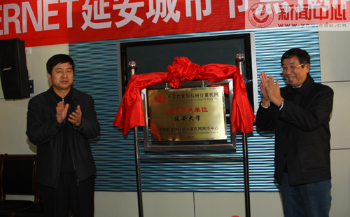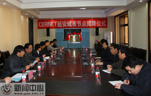 揭牌仪式上,赛尔网络陕西分公司总经理刘明辉向我校网络中心授予了中国教育和科研计算机网延安城市节点证书,许静洪副校长和张德运教授共同为节点揭了牌,来自西安交通大学的张德运教授发表了语重心长的讲话,各与会单位的代表先后发了言。