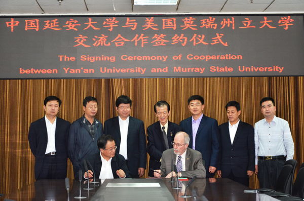 本网讯 今天下午,我校与美国莫瑞州立大学校际合作交流框架协议签字仪式在图书馆会议室举行。我校校长崔智林、副校长张威虎,研究生处、学生处、教务处负责人,国际处全体人员,莫瑞州立大学副校长唐·罗伯逊,国际事务学院副院长、英语语言学院院长邹光明,以及部分学生代表参加了签字仪式。签字仪式由张威虎副校长主持。