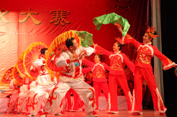 本网讯 12月25日晚,由校工会委员会主办的第二届教职工“庆元旦、迎新年”陕北秧歌大赛在我校大礼堂举行,校党委副书记吴耀、全校各部门和各学院主要领导与近千名师生共同观看了比赛。