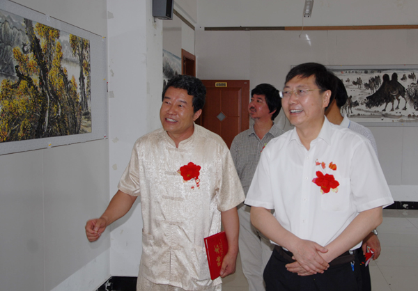 开幕式结束后,张金锁校长等在葛立才教授的陪同下到星海楼五楼展室观赏了展出的作品。