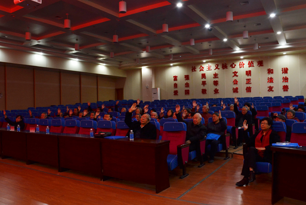 随后举行了第四届理事会第一次会议。会议举手表决通过了马江生会长的工作报告,举手表决通过了第四届延安大学老教授协会理事会理事候选人建议名单,宣布了薛义忠书记、张金锁校长、许静洪副校长为延安大学老教授协会第四届理事会名誉会长。选举产生了延安大学老教授协会第四届理事会领导机构,马江生任会长,史和平、李见勇、韩琳、李西安任副会长,李西安任秘书长,史和平任副秘书长。马江生教授作为延安大学第四届老教授协会会长作了表态发言,表示不辜负大家的期望和嘱托,并就我校老教授协会今后的工作提出了意见和想法。最后,史和平副会长对大会进行了总结,并宣布延安大学老教授协会第四届会员大会闭幕。