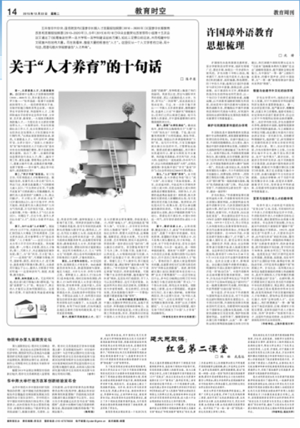 本网讯 今天出版的《光明日报》,在第14版《教育周刊·教育时空》,发表了我校党委宣传部部长韩琳和教务处处长武忠远合写的文章《延大思政课:红色第二课堂》,全文约1500字。