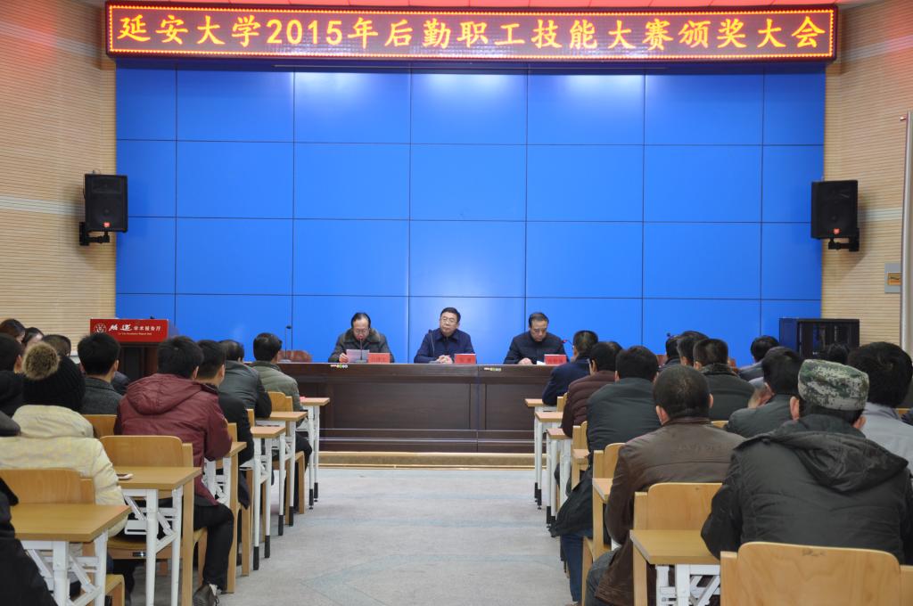 会上,工会主席白泽生宣读了延安大学教育工会、后勤服务集团联合表彰2015年后勤职工技能大赛先进个人的决定。对参赛的厨师组、驾驶员组、绿化工组、电工组、管道工组中的先进个人进行了颁奖表彰,其中一等奖5人、二等奖10人、三等奖10人、优秀奖14人。