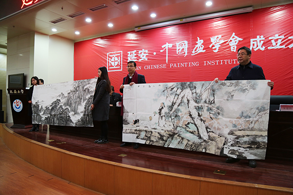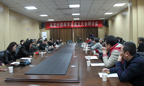 下午14时,延安中国画学会成立大会研讨会在我校图书馆二楼举行。研讨会由延安中国画学会名誉会长冯颜明主持。王金岭先生、马继忠教授、企业家刘永平等专家学者围绕延安中国画学会的人员结构、成立内涵、前进方向等问题,进行了交流与探讨。