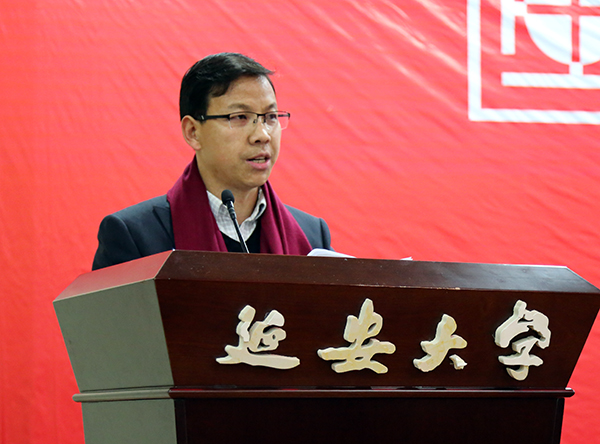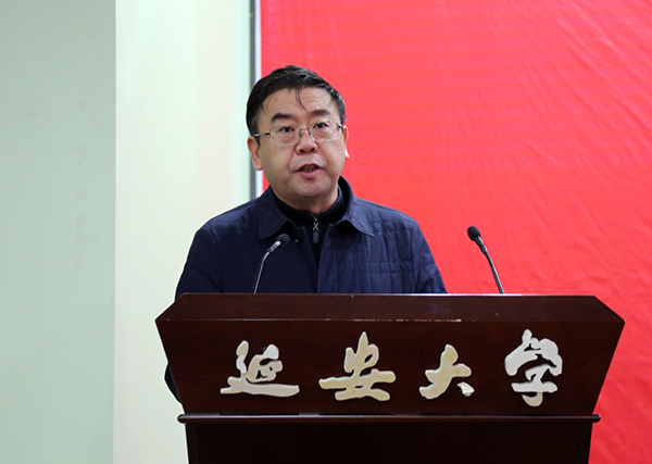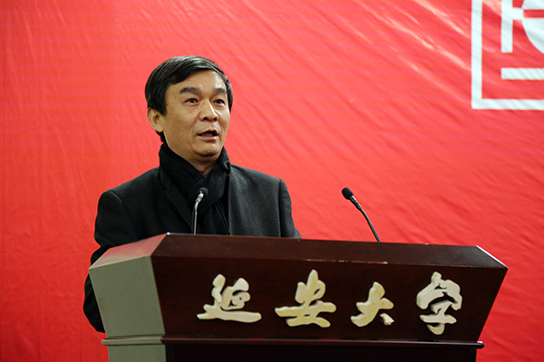 马勇副校长在讲话中充分肯定了延安中国画学会成立的重要意义,并代表延安大学对为学会成立做出支持与努力的各界朋友表示感谢。他希望延安中国画学会要有正确的创作方向,顺应时代潮流,加强学会与延安美术界各方面的互动交流,把繁荣中国画创作作为学会的根本任务,开展普及工作,通过培训、画展等形式吸引并让更多的民众了解中国画、喜欢中国画,促进中国画的更好发展。