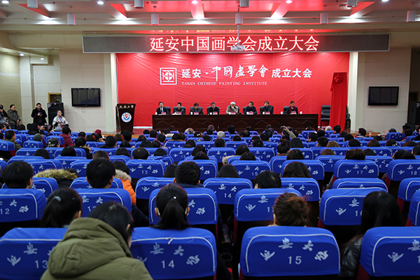 成立大会上,延安市民政局张志明宣布了对延安中国画学会成立的批复文件,工作人员相继宣读了来自山东省中国画学会、现代工笔画院、贵州省画院等多家组织机构发来的贺信,并宣读了延安中国画学会机构人员及学会特聘专家委员会委员名单。延安中国画学会会长朱建伟对学会筹备情况及工作设想进行了介绍,表示学会一定不负众望,为陕西省乃至全国的中国画发展做出应有的贡献。赵振川副会长在致辞中希望广大创作者利用好这一优势,扎根生活,创作出无愧于时代的作品。郭线庐院长在讲话中希望延安中国画学会利用好自身优势,积极研究传承、主动探索、开拓创新,为丰富和加强中国美术事业发展做出贡献。