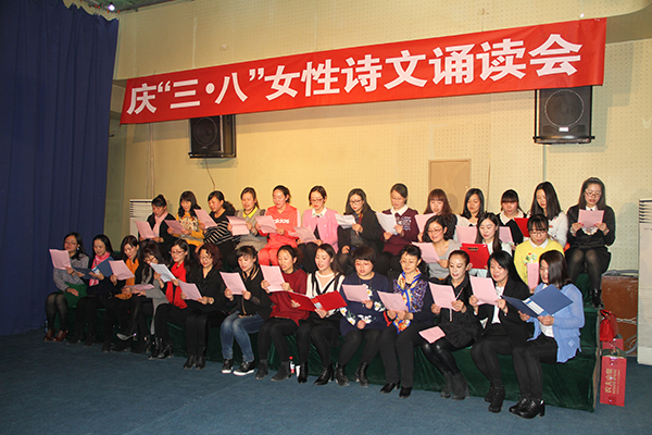 随后,来自全校19个单位的女教职工代表先后朗诵了《有人说》、《初相遇》、《亲爱的三月,请进》、《心中有风景的女人,时刻绽放着优雅》等诗篇。朗诵会催人奋进,令人沉思。最后,朗诵会在全体代表朗诵的《唱给自己的赞歌》的诗歌声中落下了帷幕。各位女教职工用自己的智慧和才华,把诗文的精神和思想展现了出来,同时充分展现了我校广大女教职工高尚、高贵的品质和知性女性的风采。