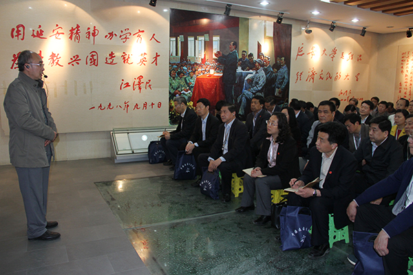 本网讯 4月14日下午,正在中国延安干部学院参加党性教育专题培训的全国48所高校负责人,来我校开展党性教育、延安精神教育和相关经验交流暨学习考察活动。这些负责人分别来自中央民族大学、中央财经大学、天津外国语大学、山东师范大学、南京理工大学、华东交通大学、西藏大学等兄弟院校。