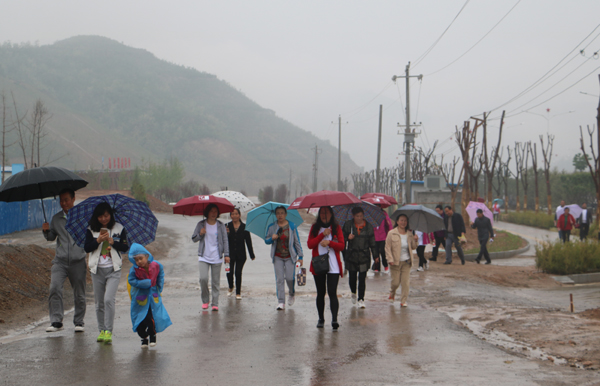 仪式结束后,尽管还下着雨,但是丝毫没有影响大家的热情,全校近500名教职工兴致勃勃地徒步登上我校新校区。在新校区,教职工们还情绪高昂地参加了由延安交通银行赞助的各种抽奖、一元秒杀采购活动。