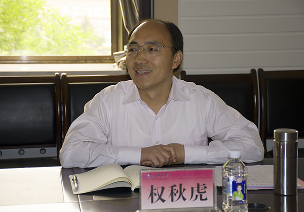 袁宁秘书长对学校的发展、特别是学科建设工作取得的成绩给予了充分的认可,并向学校介绍了陕西省“双一流”建设的基本精神和相关政策。他表示,延安大学有着光荣历史,并一直秉承“自力更生、艰苦奋斗”的延安精神办学育人,为地方经济社会做出了巨大的贡献,他坚信延安大学的未来是美好的。省教育厅将积极支持延安大学的“双一流”建设,针对学校提出的具体意见,省教育厅将认真研究。权秋虎主任表示省学位办将积极支持延安大学的学科发展,为学校一流学科建设提供更多支持和保障,希望延安大学根据国家“双一流”建设方案和具体要求,积极谋划,抓住机遇,为建设更加特色鲜明的一流学科而努力。随后,研究生处处长杨亮才、我校省级优势和特色学科负责人以及学院主管学科工作负责人高楼军、韩琳、王文强、杨彦玲、刘国荣、邹腊敏等围绕省级优势学科建设和“双一流”建设等工作,与袁宁秘书长一行进行了热烈的交流与讨论。
