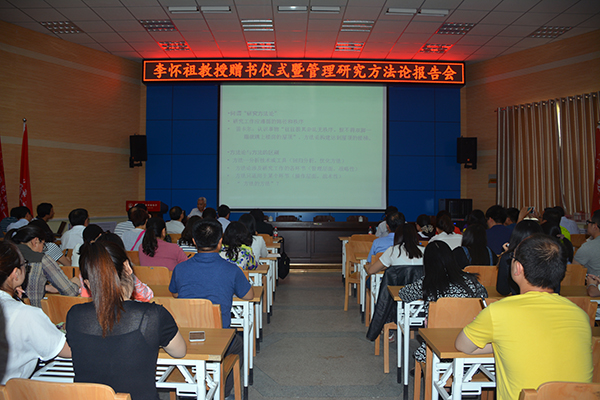 本网讯 6月8日下午,李怀祖教授赠书仪式暨管理研究方法论报告会在我校路遥学术报告厅举行,我校李怀祖教授的学生及公管与经管学院100多师生参加了赠书仪式暨报告会。赠书仪式暨报告会由我校副校长胡俊生主持。
