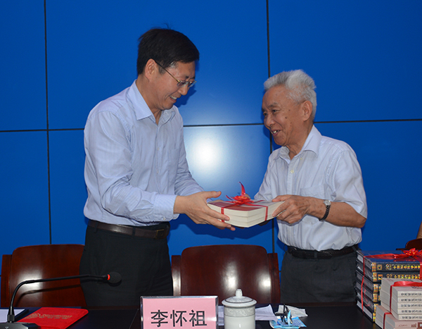 李怀祖教授是我国著名管理学家,中国决策科学的开拓者与倡导者之一,西安交通大学管理学院创始人之一,是国内最早注意到我国管理研究方法不够规范,管理教学和研究与国际存在差距,并潜心该领域研究的学者。他的著作《管理研究方法论》已经成为我国大学广泛采用的管理类硕博研究生教材,并在全国管理教育领域产生了广泛而深远的影响。李怀祖教授向我校捐赠了《管理研究方法论》、《管理类专业学位论文研究及撰写》、《20世纪中国知名科学家学术成就概览》等图书。张金锁校长代表学校接受了捐赠,并向李怀祖教授颁发了捐赠证书。