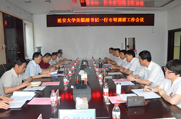 本网讯 6月20日,校党委副书记吴耀带领医学部主任李士新等一行5人赴附属医院,就薛义忠书记《在延安大学附属医院干部大会上的讲话》贯彻落实情况和“两学一做”开展情况进行检查和调研,附属医院领导班子全体成员参加了调研活动。调研活动由附属医院党委书记周秦主持。