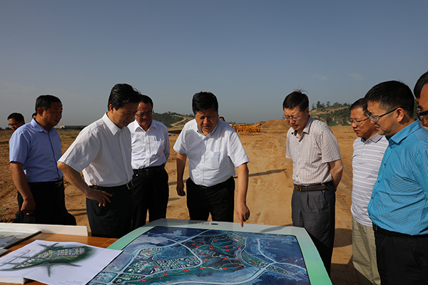 在已经开挖的我校新校区中心位置,王建利厅长面对图纸、对照实地,听取了我校党委书记薛义忠和校长张金锁关于规划设计的情况介绍,以及工程进展的工作汇报。听完介绍和汇报,王建利厅长就新校区面积、挖方和填方位置、地质构造等问题进行了询问,薛书记和张校长逐一进行了解答。