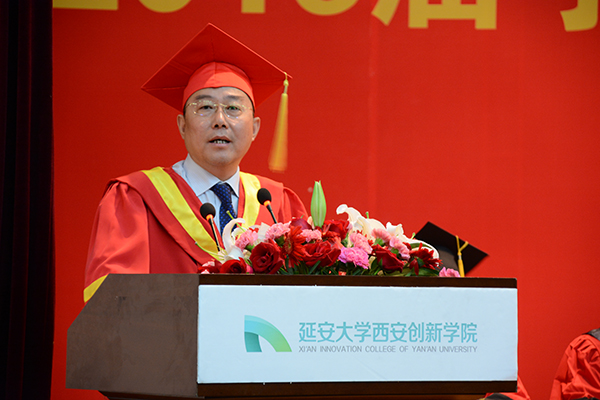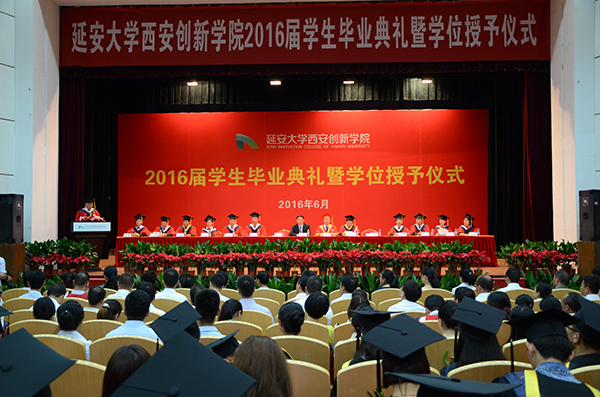 本网讯 6月28日上午,西安创新学院举行2016届学生毕业典礼暨学位授予仪式,我校副校长、创新学院院长、创新学院学位委员会主席陈华为毕业生授学位,并向韩国交换生颁发了课程结业证书。创新学院董事长王喜荣先生出席并为优秀毕业生和优秀学生干部颁了奖。创新学院党委常务副书记、学院副院长封学军主持典礼。