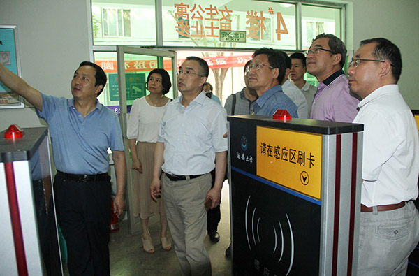 本网讯 7月4日,榆林学院副院长张富林带领学校网络中心、财务处、保卫处、人事处、国资处、招就处、党政办、学生处、教务处、信息工程学院等单位负责人来我校考察交流。我校副校长胡俊生和党委办公室、校长办公室副主任兰鸿涛等接待了张富林副院长一行,并陪同张富林副院长一行参观了我校校史陈列馆、路遥文学馆,实地考察了保卫处监控中心、网络中心、卡务中心,分别听取了校保卫处处长赵贞关于校园监控与信息化管理、网络中心主任张成关于校园信息化建设与管理以及财务处处长强伟关于校园一卡通建设与使用的情况介绍。