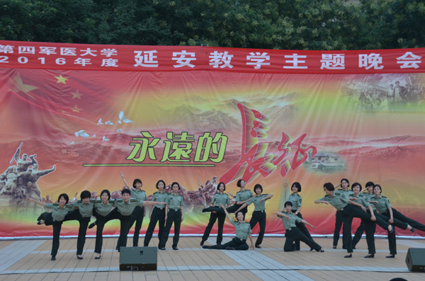 8月17日晚,第四军医大学的学员们在我校窑洞广场举办了《永远的长征》教学主题晚会。田伏虎副书记等观看了晚会。
