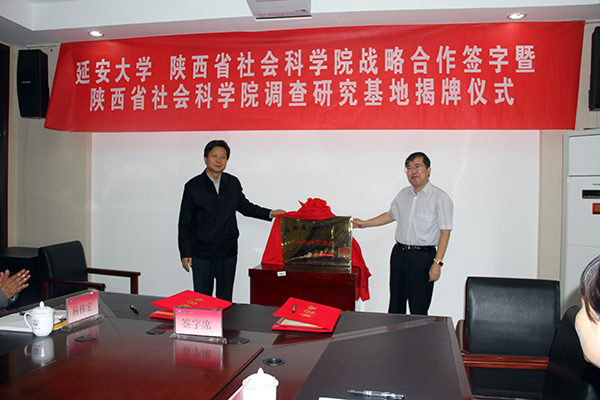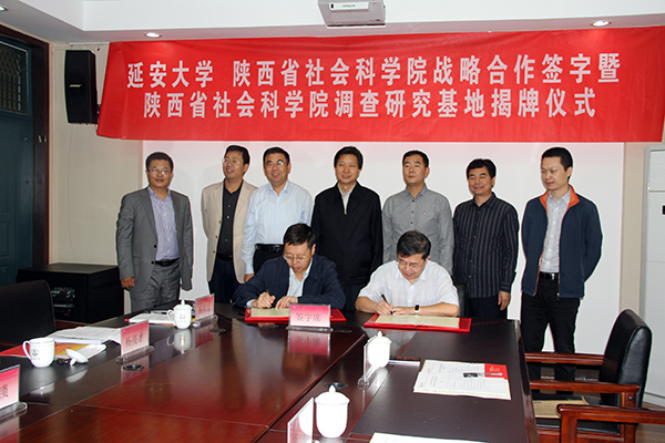 随后,举行了战略合作签字仪式,张金锁校长、任宗哲院长分别代表延安大学和陕西省社会科学院在战略合作框架协议书上签字。