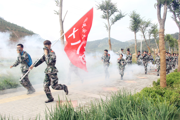 报告结束后,全体军训学员从窑洞广场出发,出三大门,经萃园校区、杜家沟路、我校新校区、杨家岭路,后经杨家岭革命旧址,进一大门返回窑洞广场和田径场。行军综合训练途中进行了四项具有战术背景的训练,分别是遭敌空袭、染毒地段、遭遇偷袭和炮火封锁,在每项训练中,学员们都能做到动作规范、秩序井然。行军综合训练过程中,学员们发扬长征精神,士气高昂、精神饱满、积极配合,按照既定要求圆满完成任务,磨砺了他们的意志,培养了他们坚忍不拔、团结互助的品质。行军训练结束后,军训团以营为单位进行了点评。