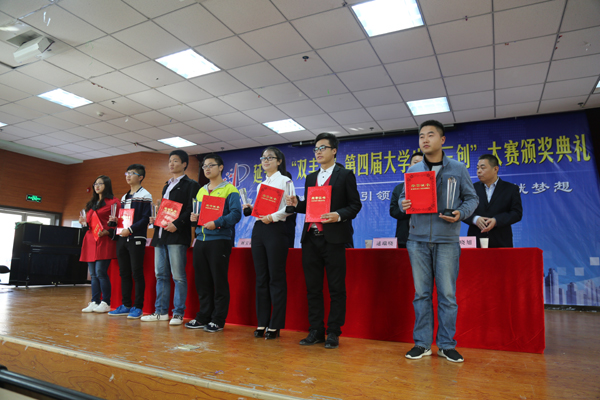 颁奖典礼上,延安职业技术学院费真副院长代表协办方讲话。马勇副校长宣读了延安市科学技术局《关于表彰延安市“双丰杯”第四届大学生创意创新创业大赛的决定》。与会的领导先后为获奖的集体和个人颁发了奖杯和证书。颁奖仪式结束后,我校学生作为获奖学生代表发了言。