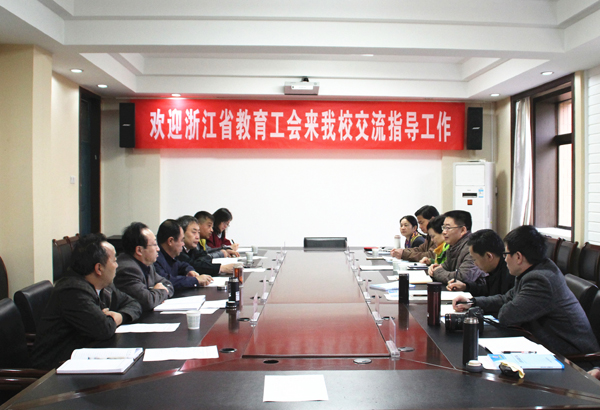 本网讯 11月3日上午,浙江省教育工会及兄弟院校工会主席一行7人在浙江省教育工会主席赵祖地的带领下来我校交流指导工作,在逸夫楼第三会议室举行了座谈会。浙江省教育工会主席赵祖地、浙江大学工会副主席毛晓华等浙江省七所高校工会主席,陕西省教育工会主席张敏,我校纪委书记王顺,工会主席白泽生等校工会干部参加了座谈会。