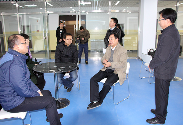 当天下午,考察组在图书馆二楼第一会议室与我校教务处、学生处、团委等部门负责同志及企业代表进行了座谈。