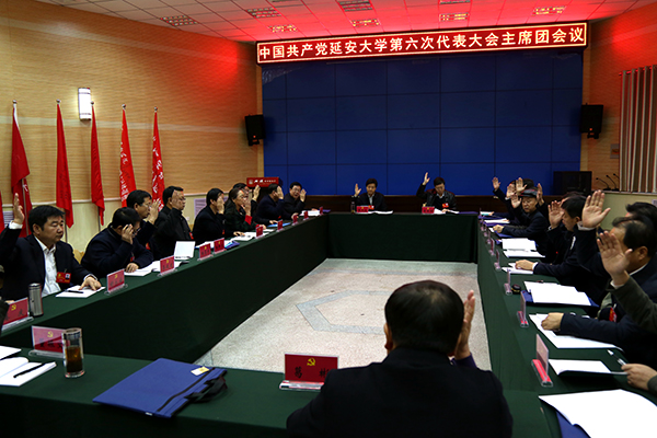 本网讯 12月4日下午,我校在路遥报告厅举行延安大学第六次党代会主席团第一次会议,主席团全体成员参加了会议,会议的执行主席是田伏虎、吴耀和范育琳,会议由田伏虎同志主持。