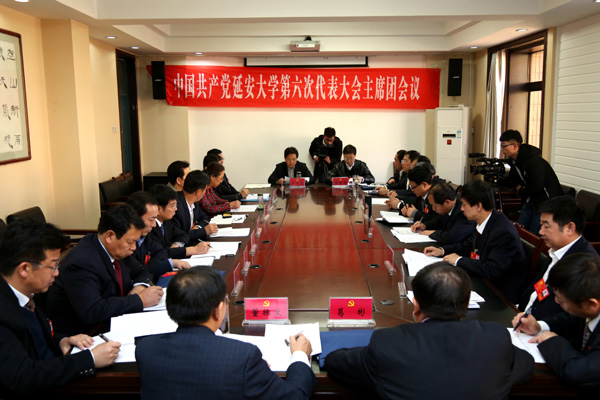 本网讯 12月5日下午,延安大学第六次党代会主席团第二次会议在逸夫楼第三会议室举行,主席团全体成员参加了会议,会议的执行主席是张金锁、陈华、武忠远。会议由张金锁同志主持。
