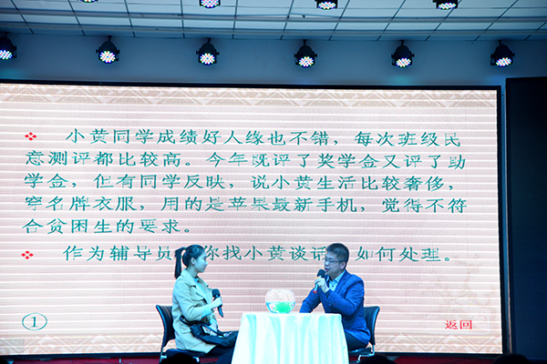 本次大赛共有29名辅导员报名参赛,经过基础知识测试及博文写作、主题班会,评选出15名选手进入复赛进行案例分析环节的比拼,最终有10名选手晋级决赛。化工学院党委书记舒永安、鲁艺学院党委书记马小惠、校团委书记李扬、组织部副部长高启荣、宣传部副部长杨文军、教务处副处长薛皓、学工部副部长乔剑担任决赛评委。