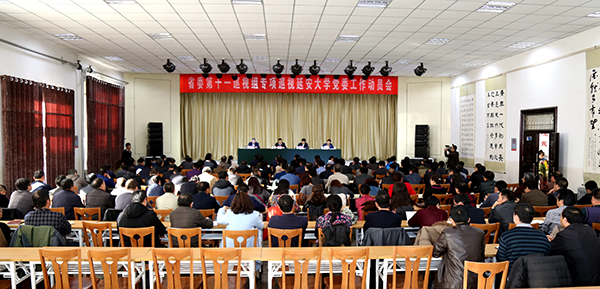 省委第十一巡视组副组长孟夏萍及巡视组全体成员,延安大学校级领导,党委委员、纪委委员,机关副处级以上干部,校学术委员会委员,各院系正处级干部、教授代表,附属医院党政主要负责人以及近三年退休的校领导参加会议。
