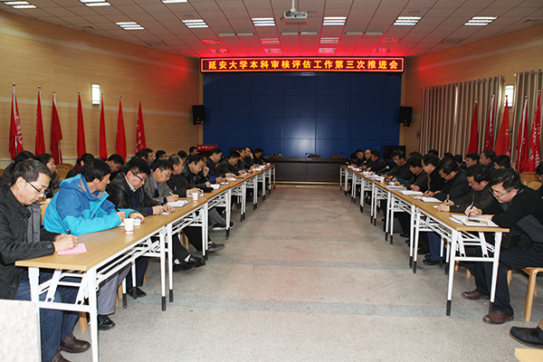 本网讯 12月13日下午,我校在路遥学术报告厅举行了本科教学审核评估工作推进会暨期末教学工作安排会。校长张金锁,副校长武忠远,两办、宣传部、团委、人事处、学生处、财务处、国资处、规划处、教师发展中心等部门主要负责人,教学督导团主要负责人,各院系(教学部)院长(主任)、教学副院长(副主任),教务处全体处级领导参加了会议。会议由武忠远副校长主持。
