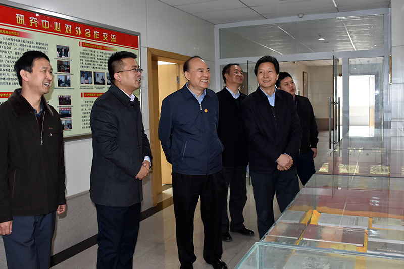 在薛义忠书记等的陪同下,刘彦华秘书长一行首先参观了我校校史陈列馆。在校史陈列馆里,刘彦华秘书长认真听取了馆内工作人员的讲解,了解了我校的悠久历史和优良传统。薛义忠书记也就相关问题进行了补充介绍。刘彦华秘书长对我校长期以来勤俭节约、艰苦奋斗、用延安精神办学育人的光荣传统和优良作风给予了高度评价。