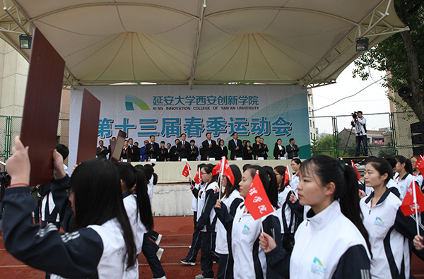 最后,陈瑶副书记宣布延安大学西安创新学院第十三届田径运动会开幕。各项比赛随之开始。