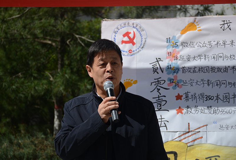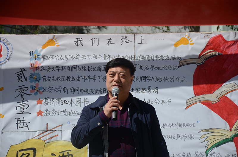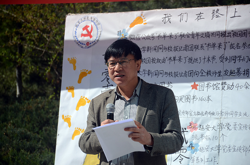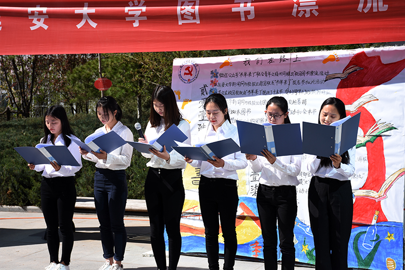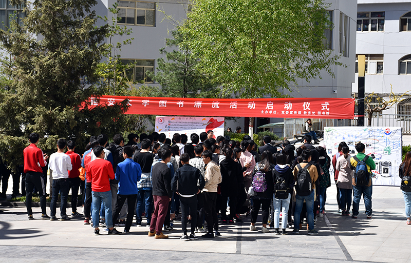 图书漂流活动启动仪式在延安大学党委宣传部校报与新闻网记者团朗诵的诗歌《读书》中拉开了帷幕。