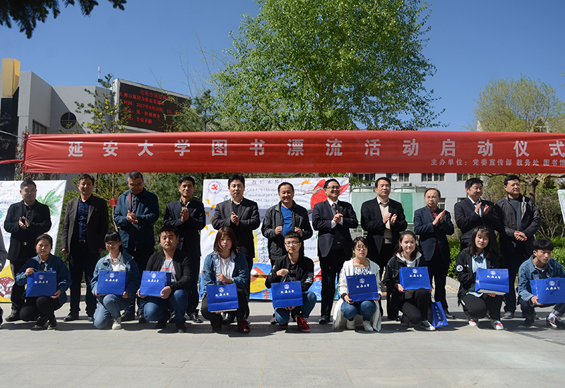 本网讯 在第21个世界读书日到来之际,由党委宣传部主办、教务处和图书馆协办,全体师生共同参与的延安大学图书漂流活动于4月21日上午在我校先锋广场拉开了序幕。党委宣传部、学工部、图书馆、教务处、团委及各学院的负责同志,党委宣传部全体工作人员,计算机学院、建筑学院、外国语学院的学生代表,校学生会、各学院学生分会学生组织及各学生社团代表参加了启动仪式。