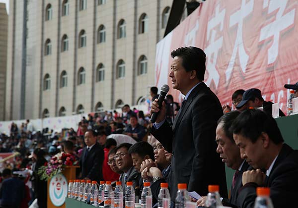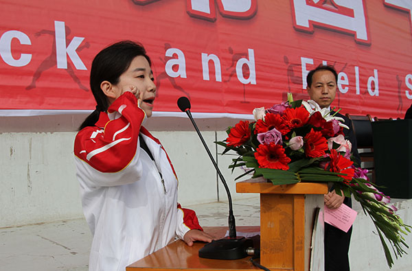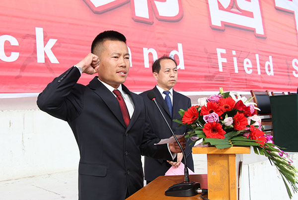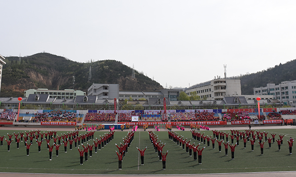 张金锁校长在开幕辞中指出,我校高度重视体育工作,坚持以学生为本,坚持“课堂教学、课外体育活动、体育竞赛”三位一体的体育教育模式,深入推进体育育人,取得了良好成效。近年来,学校将田径运动会作为体育工作的重要组成部分,坚持把黄土文化与红色文化元素融入田径运动会,打造出了独具特色的校园体育文化活动品牌,并引领和助推学校早操、广场健美操等阳光体育活动的积极开展,营造了“走向操场、走进大自然、走到阳光下”的校园体育文化氛围。田径运动会已经成为我校学生“自我管理、自我发展、自我展示”的重要平台,成为我校校园文化中一道亮丽的风景,为学校体育工作乃至全校各项事业的蓬勃发展注入了活力。希望全体运动员发扬“更快、更高、更强”的奥林匹克精神,不畏强手,超越自我,展现出昂扬斗志;比赛中,尊重对手,尊重裁判,尊重观众,公平竞争,以精湛的体育运动技能和良好的体育道德精神,赛出水平,赛出风格,实现运动成绩和精神文明的双丰收。希望裁判员认真履职,公正裁判;工作人员精心组织、热情服务;齐心协力把本届运动会办成“团结、奋进、绿色、安全”的盛会。