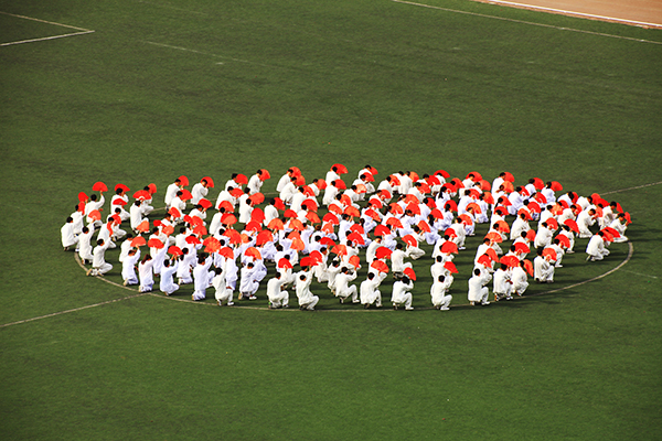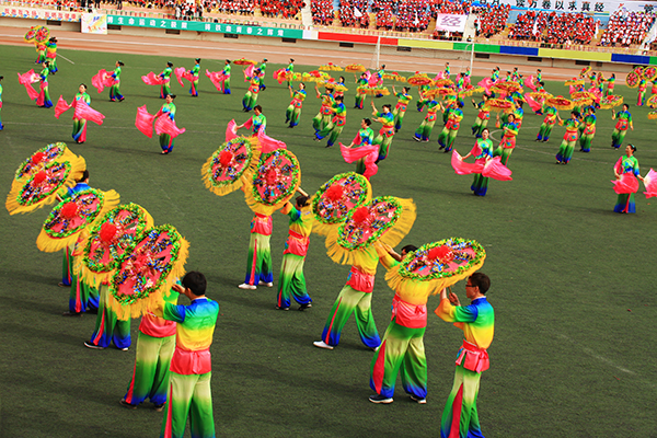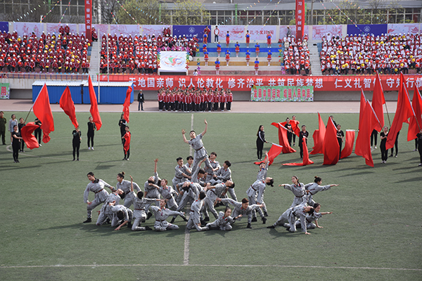 运动员、裁判员退场后,进行了太极功夫扇、韵律操、舞蹈、第九套广播体操、秧歌等大型文体表演。由体育学院、教科院、鲁艺学院、公管学院、校工会排练的这些节目,气势宏伟,色彩斑斓,展现了我校师生奋发向上、斗志昂扬的精神风貌。