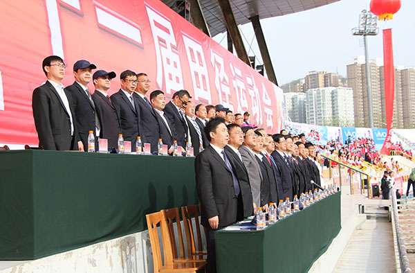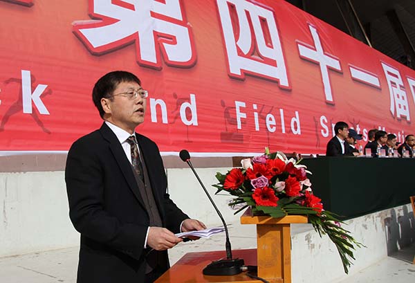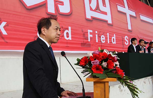 文体表演结束后,薛义忠书记宣布第四十一届运动会比赛开始。