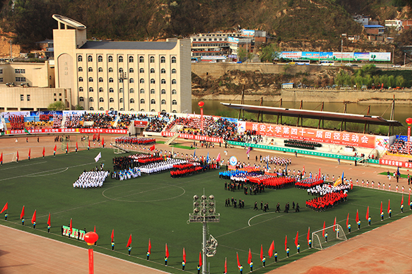 本网讯 今天上午8时整,我校第四十一届田径运动会在校体育场隆重开幕,党委书记薛义忠,党委副书记、校长张金锁,党委副书记田伏虎、王顺,副校长王刚,延安市体育局局长高强,以及校体育工作委员会全体委员出席了开幕式,全校15000余名师生参加了开幕式。开幕式由第四十一届田径运动会组委会执行主任、教务处处长付峰主持。